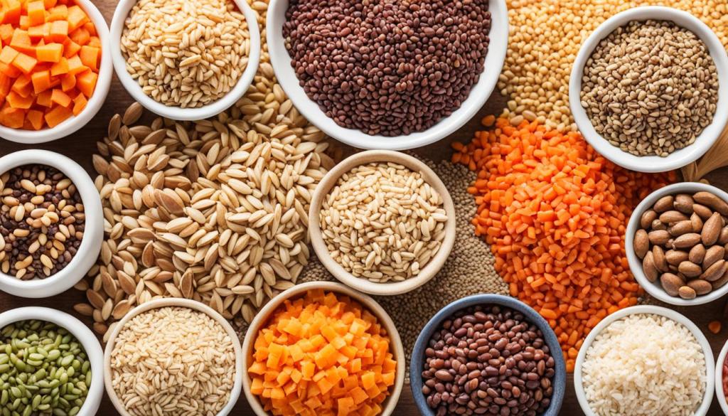Eating complex carbohydrates and whole grains is crucial. They don’t give you a quick sugar rush like simple sugars do. Instead, they slowly release energy. This keeps your energy steady all day, avoiding the ups and downs from other foods.
