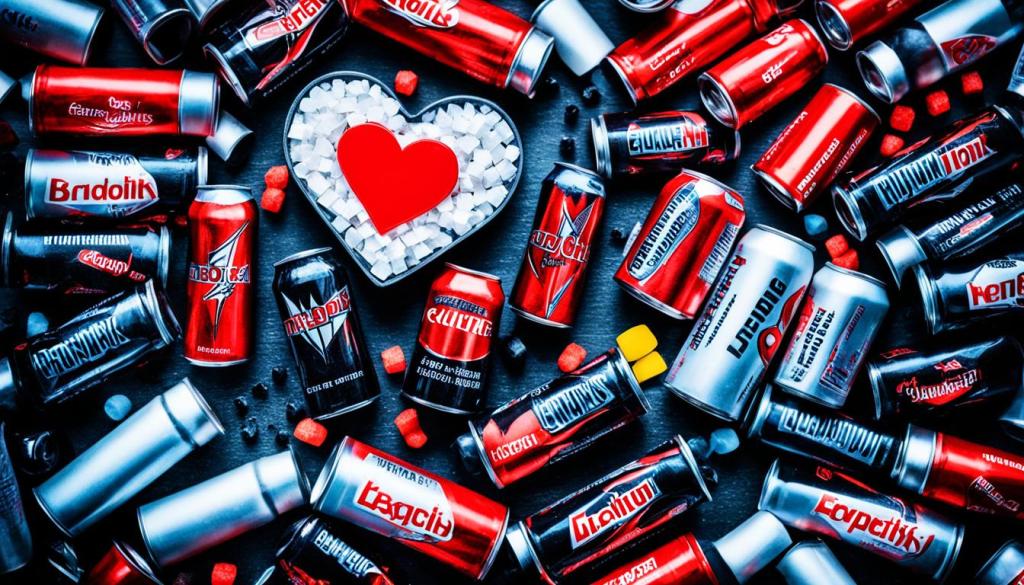 It’s important to understand how added sugars in energy drinks pose health risks. Drinking these sugar-rich beverages can cause immediate energy spikes and crashes. They can also lead to long-term health issues, including chronic diseases. It’s crucial to keep an eye on how much sugar you’re consuming from these drinks for your health.