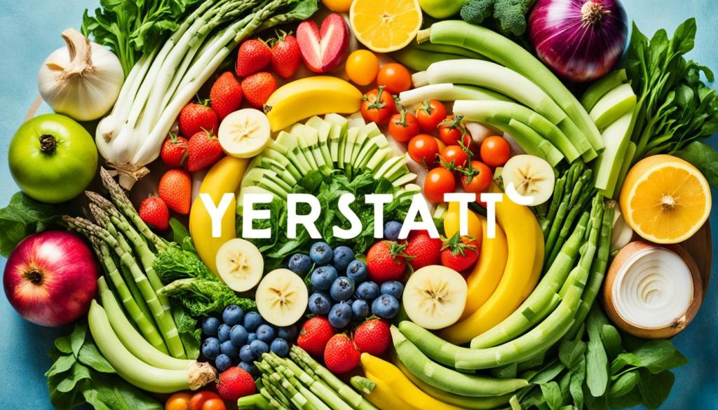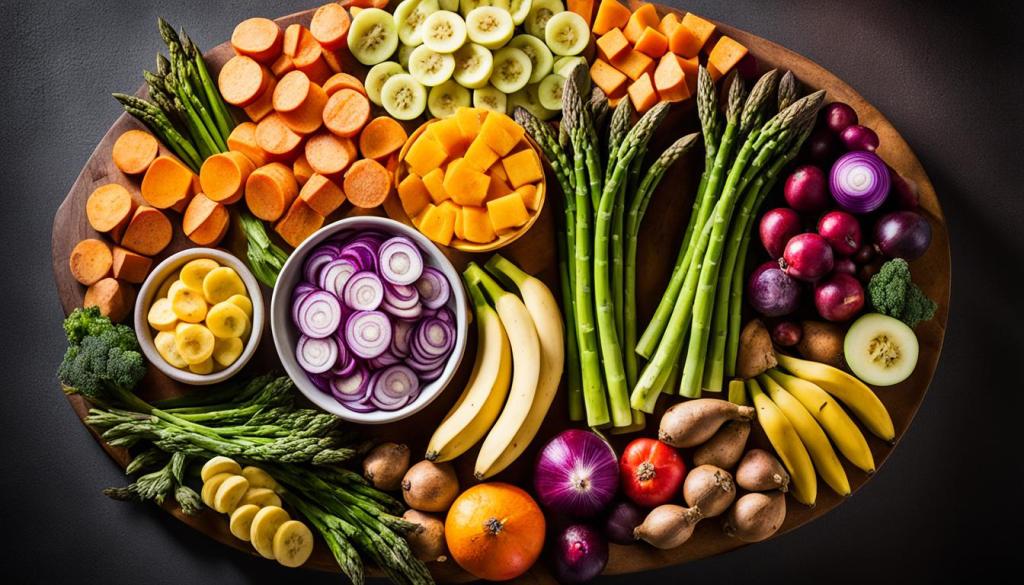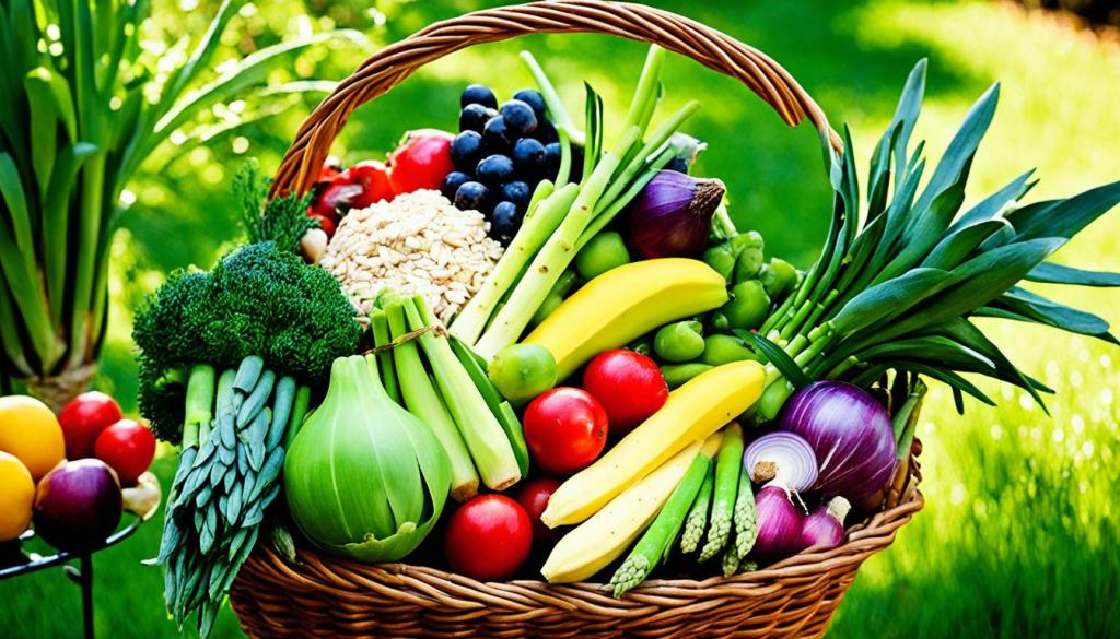 To boost your gut health, it’s key to eat foods that are high in prebiotics. These foods have a lot of prebiotics and fiber. They help keep your gut healthy. Make sure you eat lots of fruits, veggies, and whole grains.