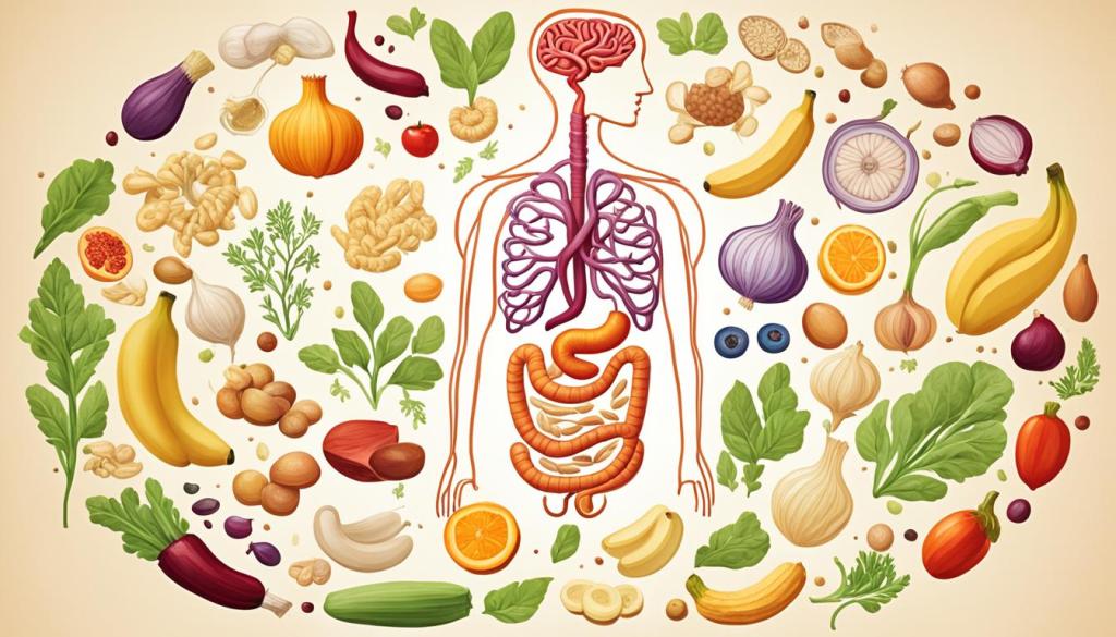 There’s also a link between prebiotics and mood. They could help our gut and brain communicate better. This might make us feel happier and less stressed.
