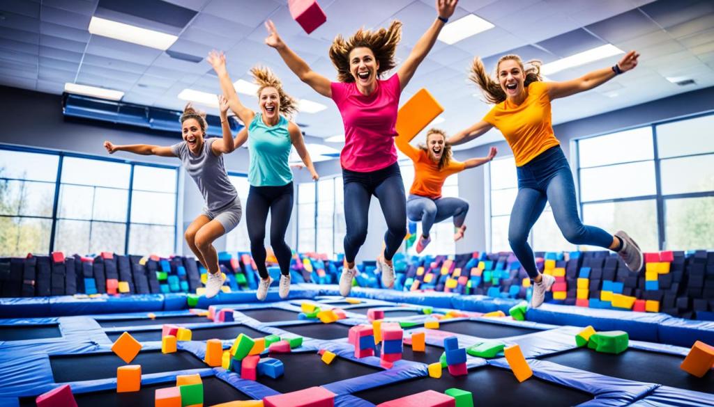 Trampoline parks are joyful for everyone. They help with heart health, balance, and coordination. It’s a fun way to be active with people you enjoy.