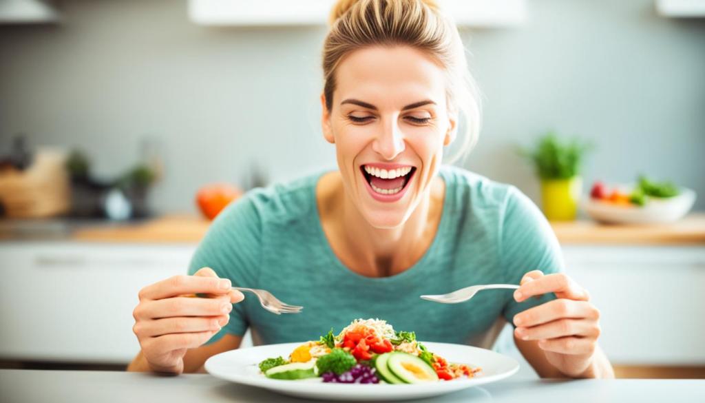 This approach lets you savor your meals and feel satisfied. It stops overeating and snacking too much, which helps with losing weight. Staying present while you eat also stops bad eating habits that make you gain weight.