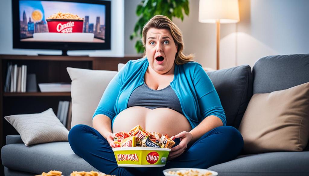 Eating while watching TV or on your phone is called distracted eating. This habit can make it hard to know when you’re full, leading to eating too much. It’s key to understand how this affects belly fat for better health.