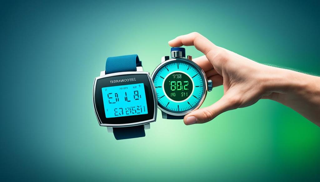 Thanks to tech advances, digital tools for checking your heart rate are now more common. Wearables like smartwatches and fitness trackers let you monitor your heart rate in real-time. They give you updates during exercise and when you’re just relaxing. These gadgets help you stay on top of your heart health easily.