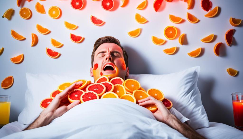 Citrus fruits like oranges, grapefruits, and lemons are tasty and full of vitamins. But, they can be bad for sleep. Their high acidity can cause acid reflux, making it hard to sleep.