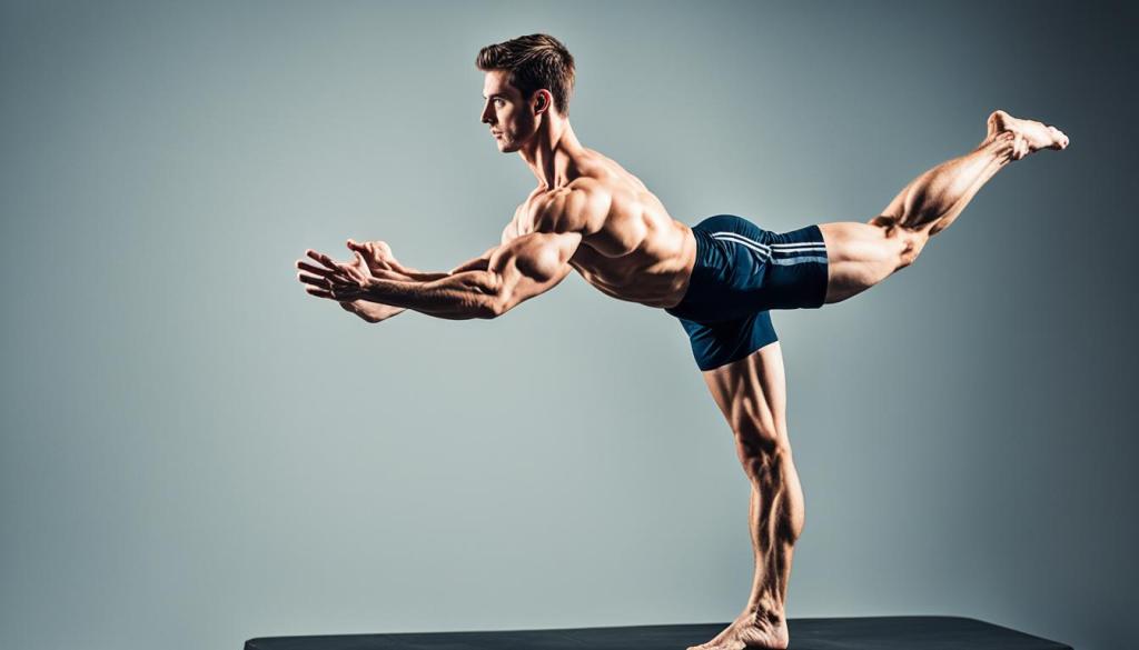 The single-leg stand is key for improving balance. It strengthens your legs, core, and muscles that help you stay stable. This simple exercise boosts your stability and coordination.