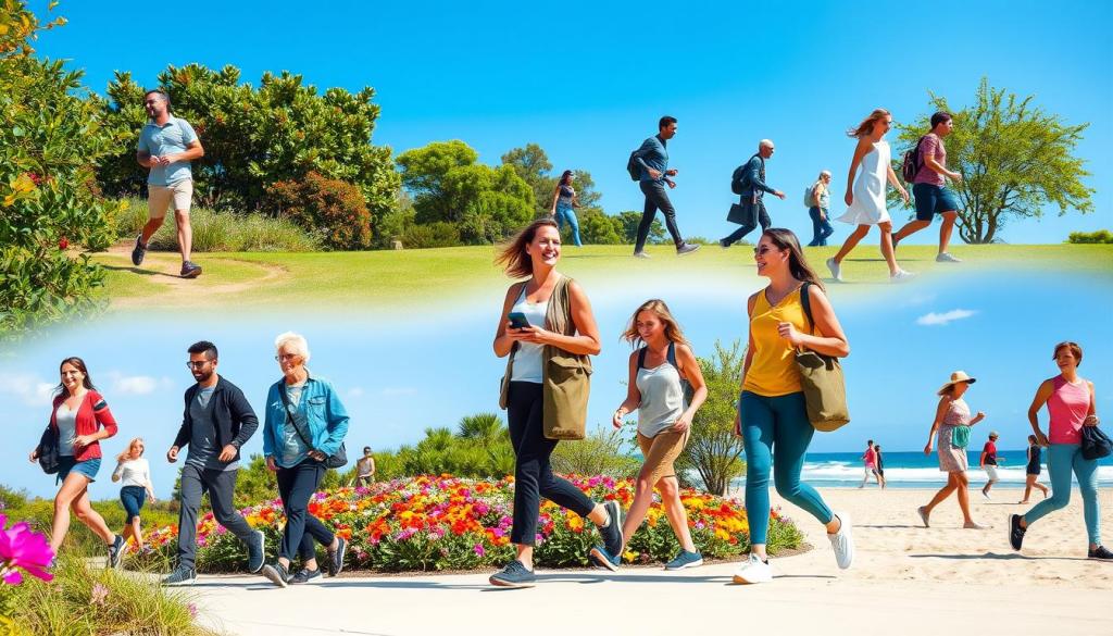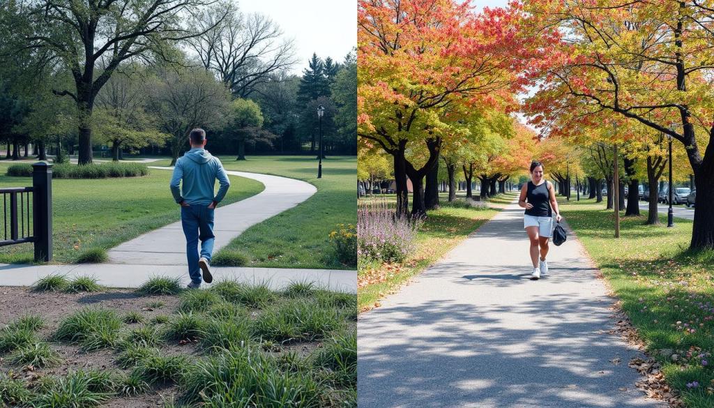 Walking in different places like parks or hills makes it more fun. Each place offers its own challenges that boost your fitness. For example, hills work more muscles than flat ground.