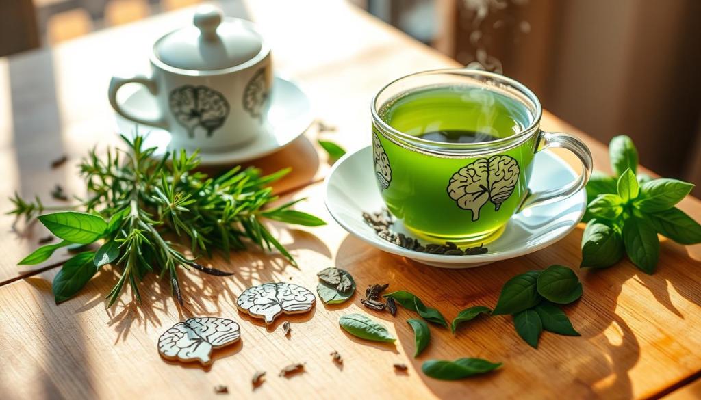 Green tea is the top choice for brain health. It’s packed with polyphenols and antioxidants. These help keep your mind sharp and emotions stable.