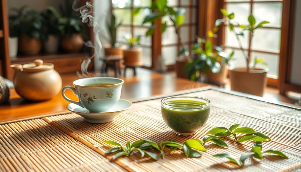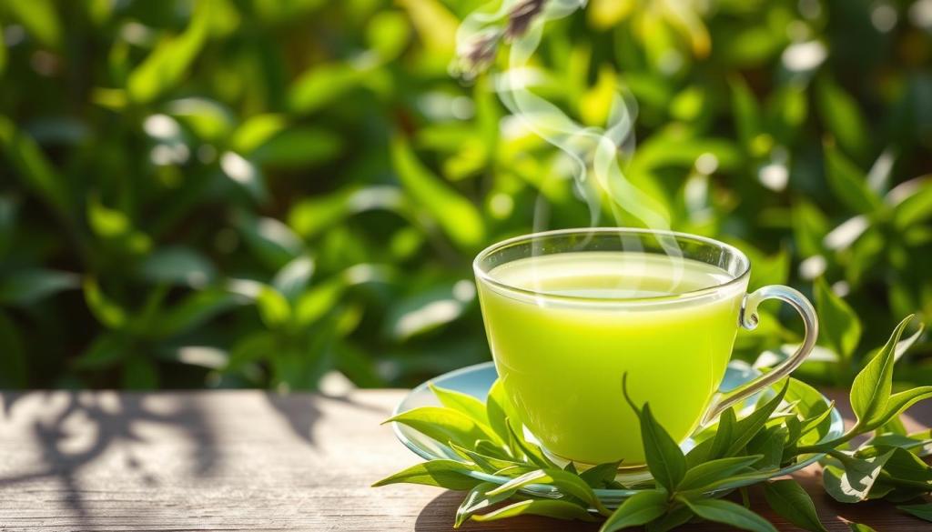 Green tea is special because of its many health benefits. It’s packed with polyphenols, which are good for your brain. These antioxidants help fight off stress and inflammation, keeping your mind sharp.