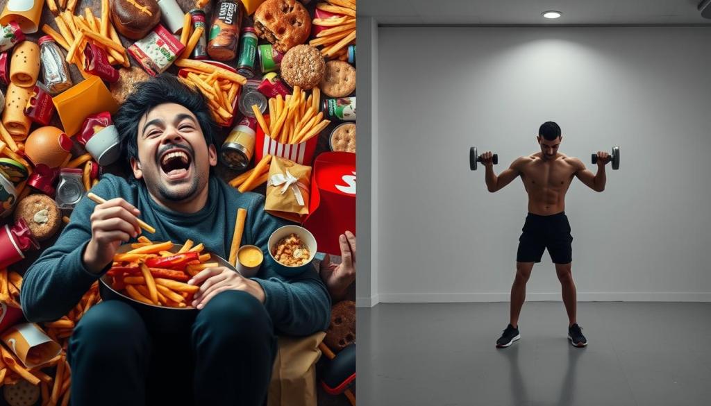 Bad habits like emotional eating and skipping meals can stop you from losing weight. Binge eating and eating too much sugar and unhealthy fats also hurt your efforts. It’s important to break these habits for lasting weight loss.