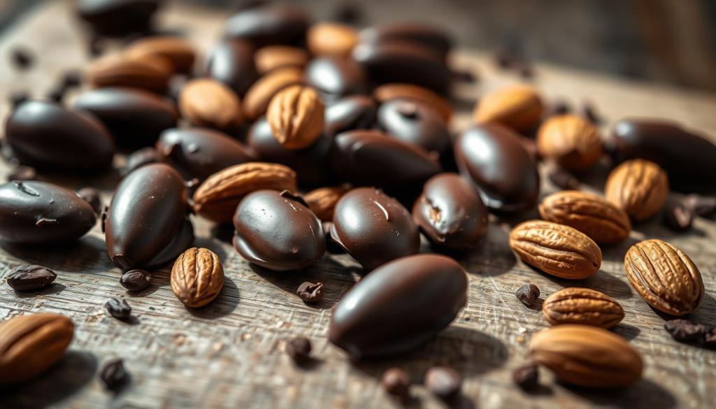 Try dark chocolate and almonds together for a snack that’s both tasty and healthy. This treat is good for your heart. It combines dark chocolate’s antioxidants with almonds’ vitamin E, magnesium, and healthy fats.