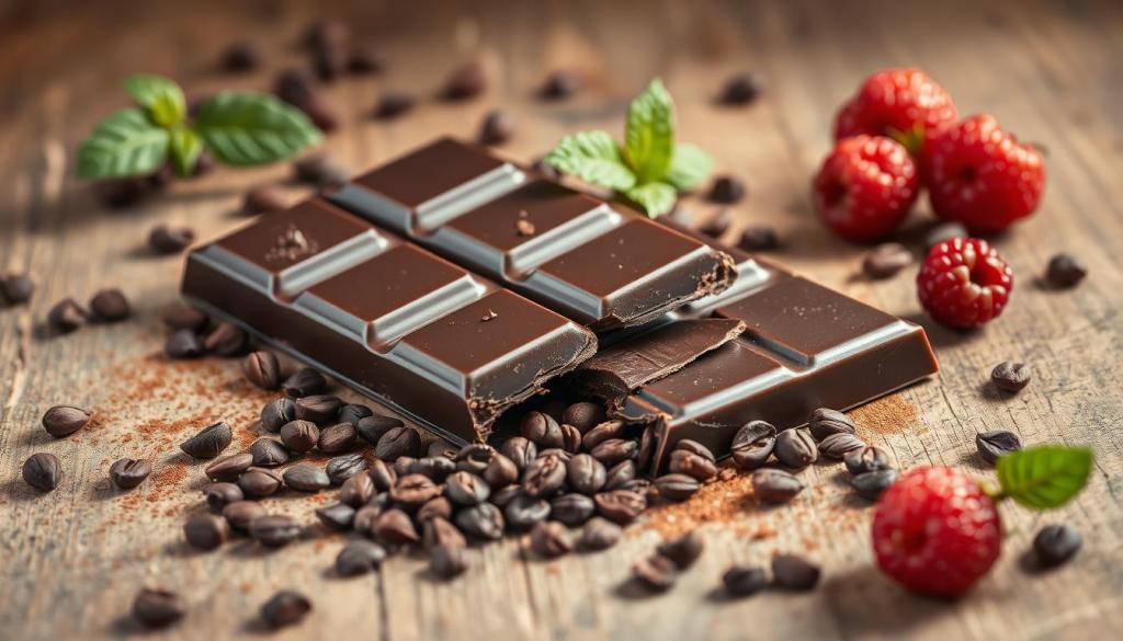 Dark chocolate is a great choice for those who love sweets and want to stay healthy. It’s full of flavonoids, which are antioxidants. These can protect your body and might help your heart too.