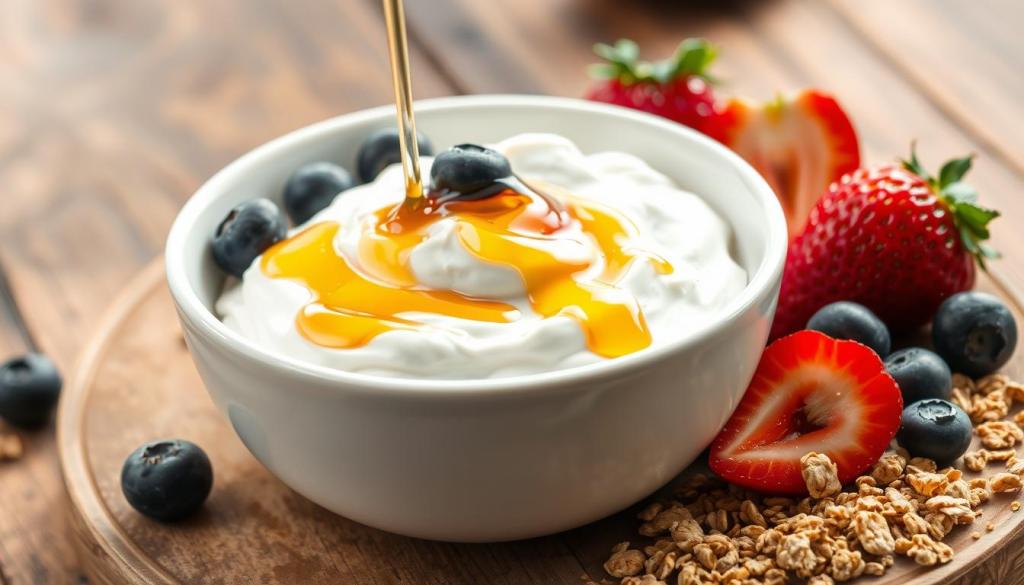 Take your snacking to the next level with Greek yogurt and honey. This combo is not only tasty but also boosts your nutrition. It’s a great way to get more protein in your diet.