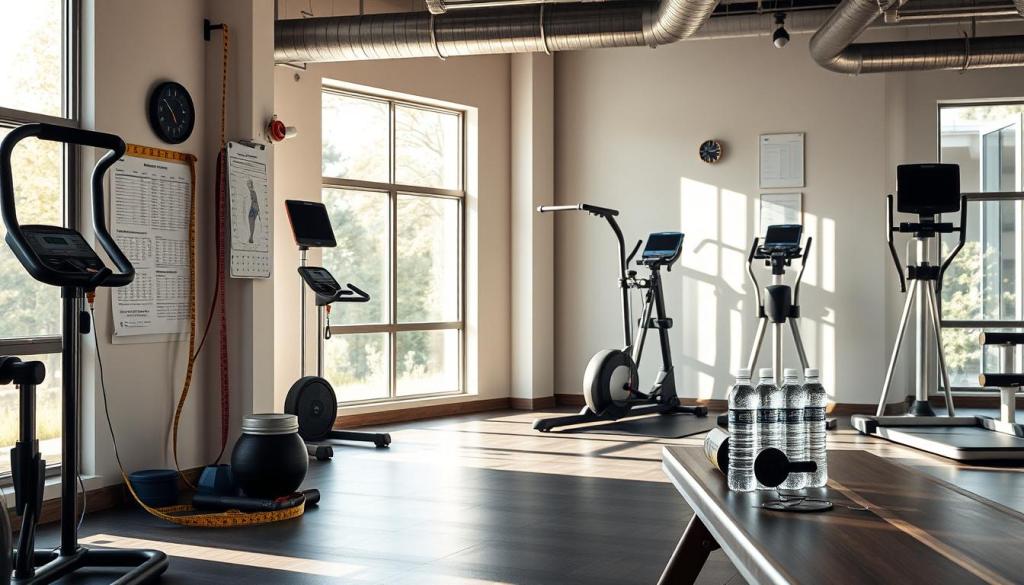 Before starting a new workout, it’s key to know your current fitness level. This sets a baseline and helps you aim for reachable goals. Start by tracking your pulse rate, walking or running times, strength, flexibility, and body measurements.