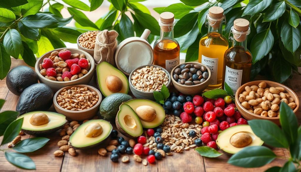 Healthy fats, like those in fish, nuts, and olive oil, are vital. They help with hormone production, nutrient absorption, and brain function. These good fats can also reduce inflammation and lower cortisol, which is good for the heart.