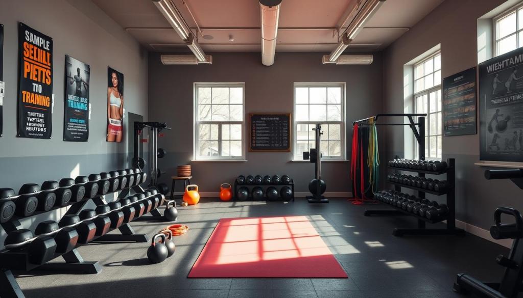 Starting weight training for weight loss needs the right gear and knowing how to do exercises right. This part will show you the basic equipment and how to move properly. It’s key to master the basics and use different types of weights well.