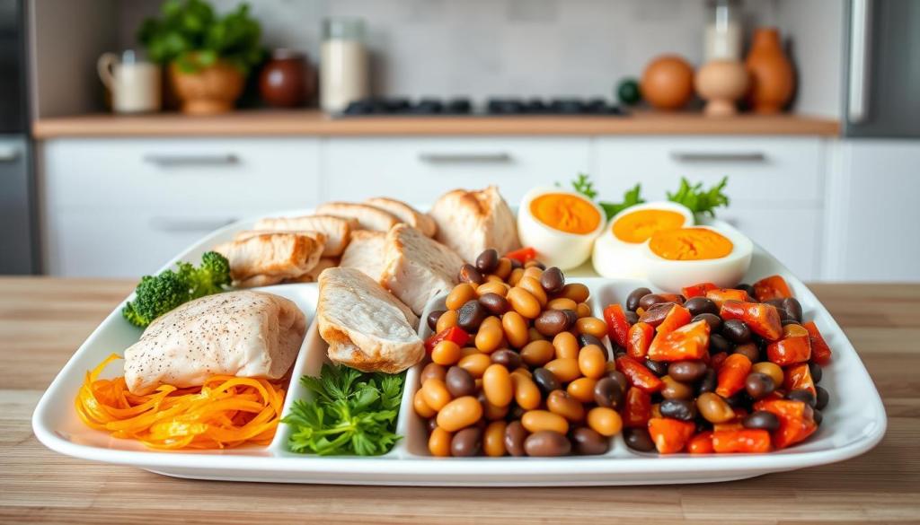 This way, you’ll keep your protein intake steady all day. Focusing on protein-rich foods will help you reach your weight loss goals.