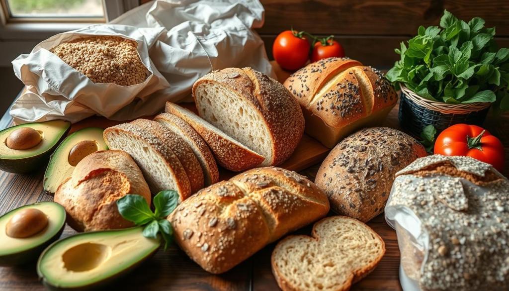 Adding whole grain bread and toast to your breakfast is smart. Some bread types, like whole grain and multigrain, pack in fiber, iron, and B vitamins. For instance, sourdough bread has probiotics for your gut. Ezekial bread, being sprouted, doesn’t raise blood sugar like white bread.