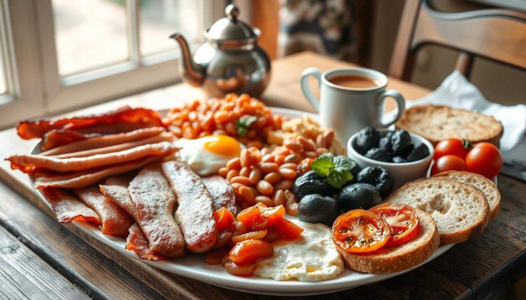 When making a British breakfast, choose lean meats like bacon and sausages. Use whole-grain toast instead of white bread. Adding grilled tomatoes and mushrooms boosts the meal’s nutrition. Remember, portion sizes are key to staying healthy.