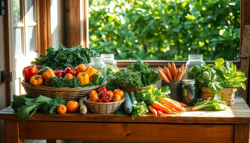 Using these storage methods lets you enjoy your homegrown veggies all year. It also helps cut down on food waste. Always follow safe food preservation practices to keep your stored food fresh and safe.