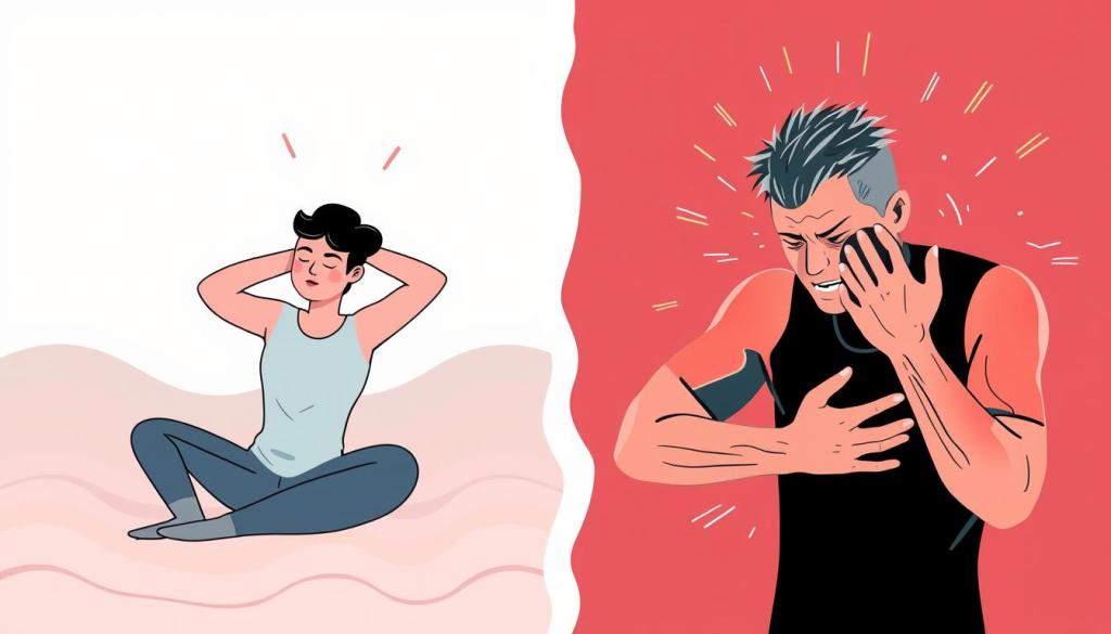 It’s crucial to listen to your body and know when it’s telling you something’s wrong. Studies show that 50% or more of people feel pain during workouts, which could mean injury. About 30% feel dizzy or really tired after hard workouts. If you’re feeling these symptoms, it’s time to adjust your workout to stay safe and effective.