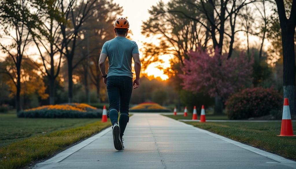 When walking backwards, safety is key to avoid injuries. It’s important to use your quadriceps, gluteal muscles, and hamstrings. This helps keep you balanced and stable.
