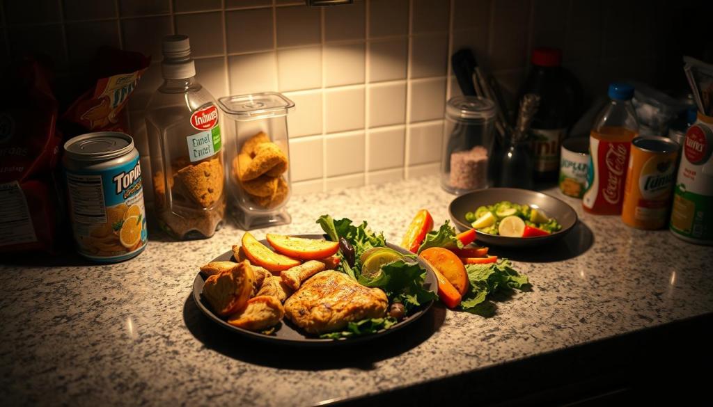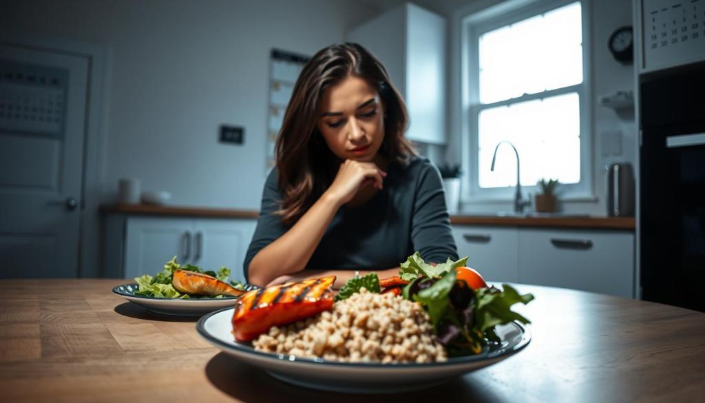 Other mistakes include skipping meals, which can slow down your metabolism, and eating too much during main meals. Healthy snacks can keep your metabolism balanced. It’s crucial to pick low-calorie snacks to avoid too many calories. By avoiding these mistakes and sticking to a structured meal plan, you can boost your chances of losing weight and staying healthy.