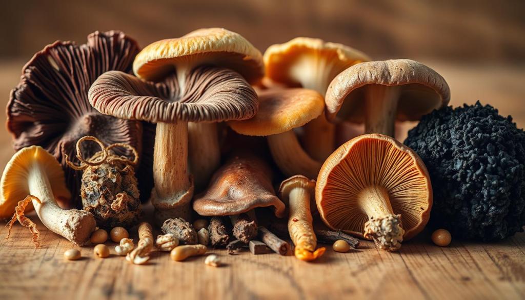 Mushrooms like reishi, cordyceps, and lion’s mane are studied for their health benefits. Reishi boosts the immune system, cordyceps gives energy, and lion’s mane helps the brain.