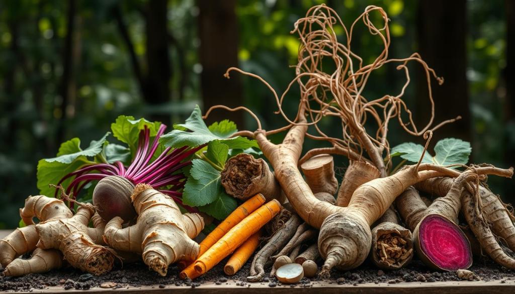 Roots and tubers have been used in traditional medicine for centuries. They offer many health benefits because of their foods with medicinal properties. These underground parts are full of nutrients, fiber, and compounds that fight diseases.