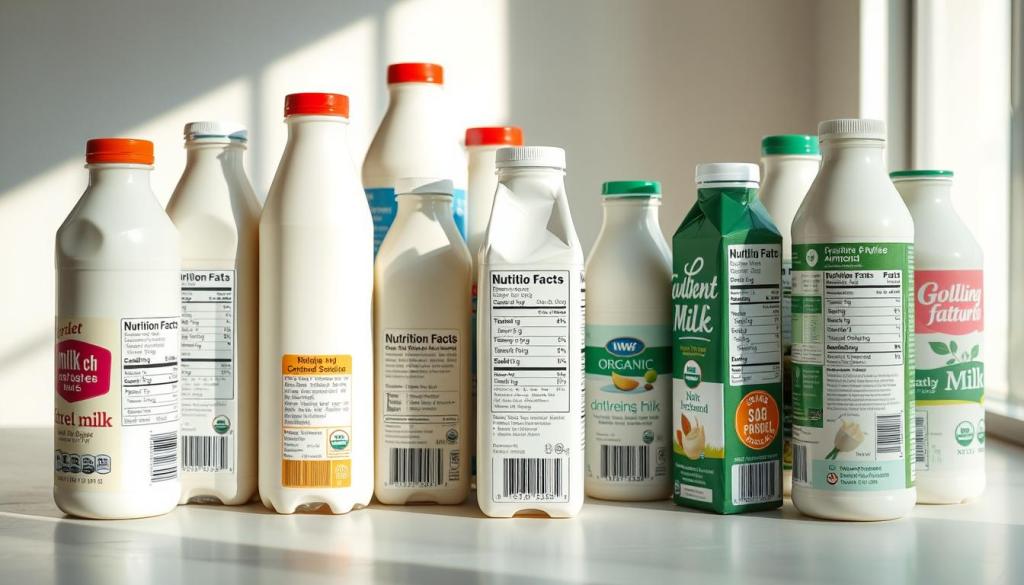 When you’re reading milk labels, it’s key to know what to look for. This helps you make smart choices about dairy or dairy-free options. Start by checking the ingredient list and nutrition label for common additives and sugar content.