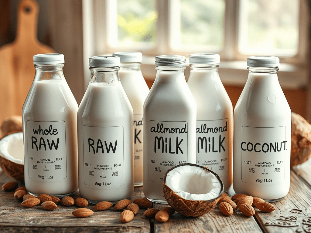 Look at calories, protein, and calcium when picking the healthiest milk. Whole milk meets 25% of daily calcium needs in one serving. Plant-based milks like almond and coconut might have added sugars or thickeners, so always check the labels.