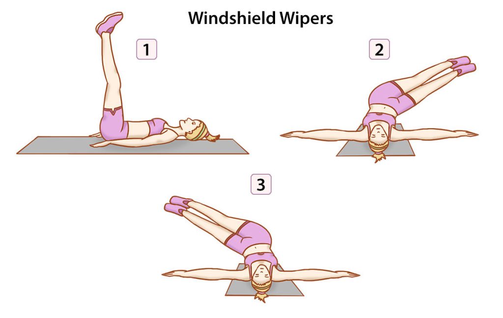 These exercises are key to a good core workout after 40. Windshield wipers work your obliques and abs. This gives you a full core workout, unlike just doing sit-ups.